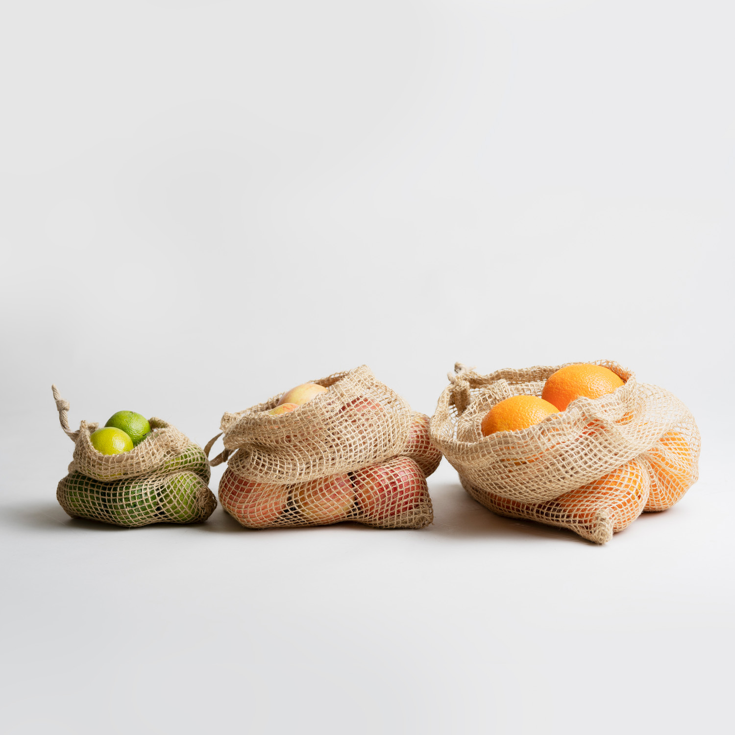 En kraftig, vacker påse i naturmaterialet jute som hjälper dig handla plastfritt! Den är enkel att bara stoppa i fickan när du ska gå ut, du slipper köpa en onödig plastkasse varje gång du gör ditt matinköp. Nätpåsen har en fiffig dragsko upptill som håller innehållet på plats. Perfekt som frukt eller grönsakspåse både i affären men även som förvaring hemma. Toppen till barnens fruktstund på äventyret, till babyvården i skötväskan, att förvara saker i på resan eller varför inte ha den som inredningsdetalj? Denna storlek rymmer ca 10 stycken äpplen.